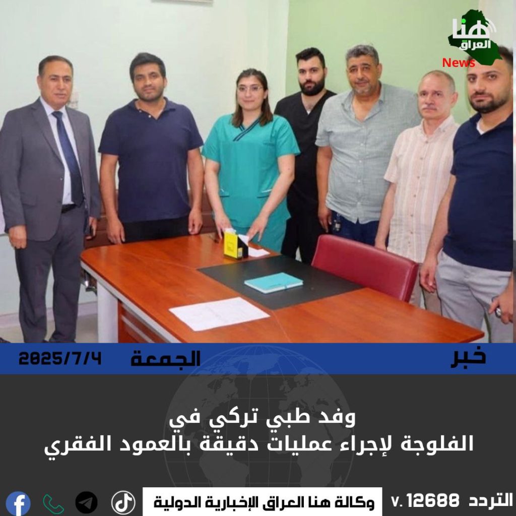 في إطار برنامج الاستقدام الطبي، وصل وفد طبي تركي متخصص إلى مستشفى الفلوجة التعليمي لإجراء عمليات جراحية معقدة في مجال العمود الفقري، ضمن خطة وزارة الصحة لتوفير العلاج المتقدم داخل البلاد، وتخفيف عبء السفر الخارجي على المرضى.
