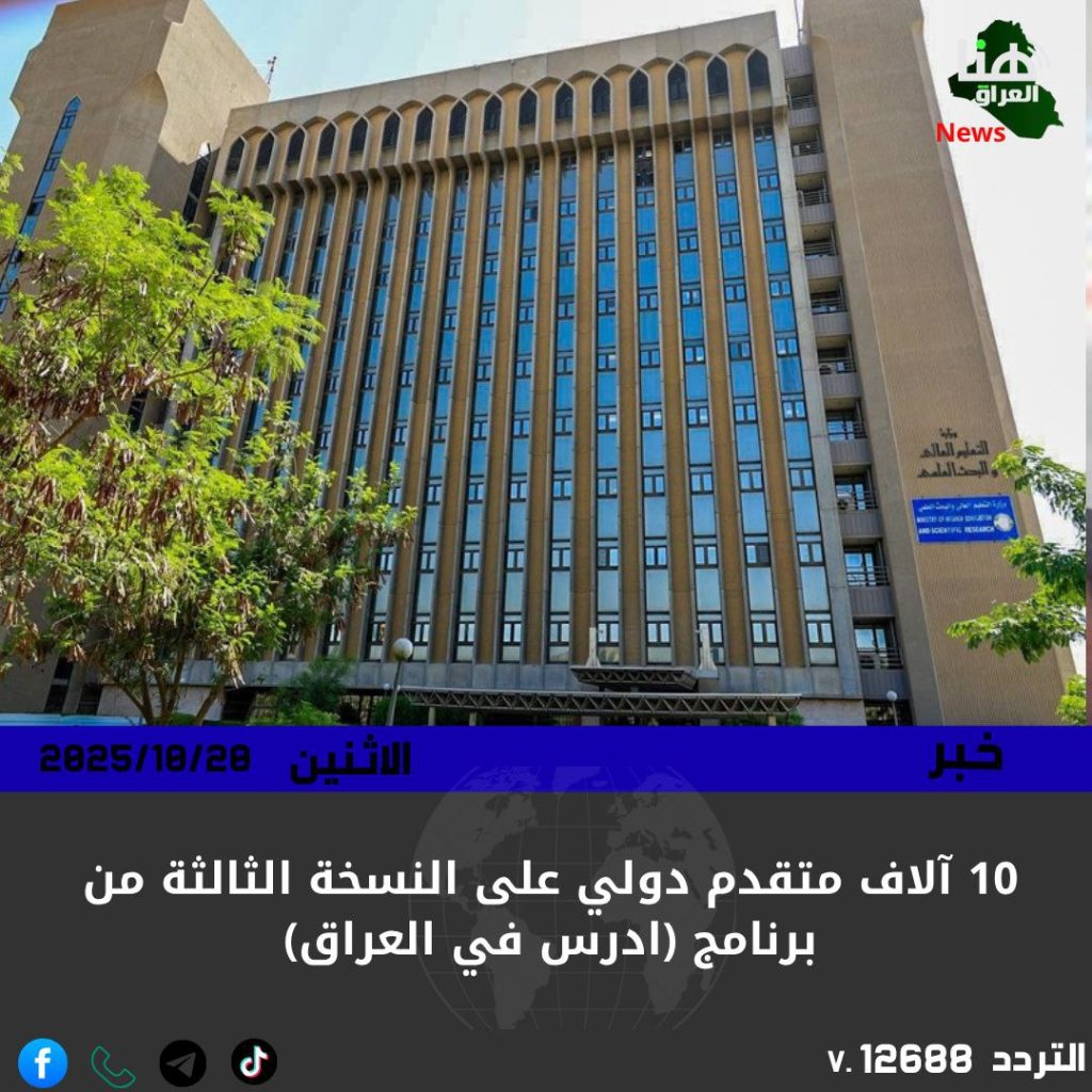 أعلنت وزارة التعليم العالي والبحث العلمي أن النسخة الثالثة من برنامج “ادرس في العراق” جذبت أكثر من 10 آلاف طالب دولي من مختلف الجنسيات، في حين بلغ عدد الطلبة الدوليين الدارسين في العراق حالياً أكثر من 3 آلاف طالب ينتمون إلى 47 جنسية.