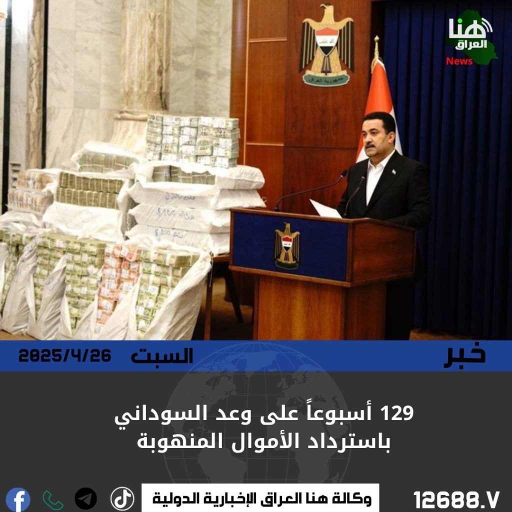 قال الباحث في الشأن السياسي نزار حيدر، إن الأسبوع الحالي يُعد الأسبوع رقم 129 منذ تعهد رئيس الوزراء محمد شياع السوداني باسترداد الأموال المنهوبة في قضية “سرقة القرن” خلال أسبوعين فقط.