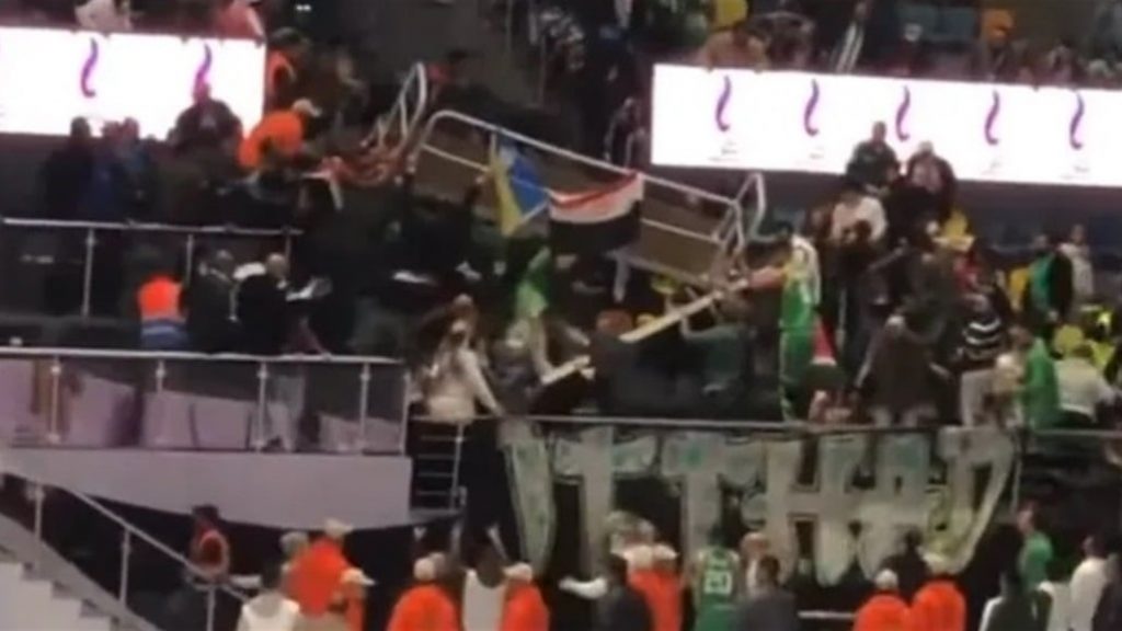 تسبب انهيار جزء من مدرج بصالة حسن مصطفى بضاحية 6 اكتوبر جنوب القاهرة إصابة 27 مشجعا لنادي الاتحاد السكندري خلال مباراة فريقها ضد الاهلي في الكأس السوبر المصرية في كرة السلة.