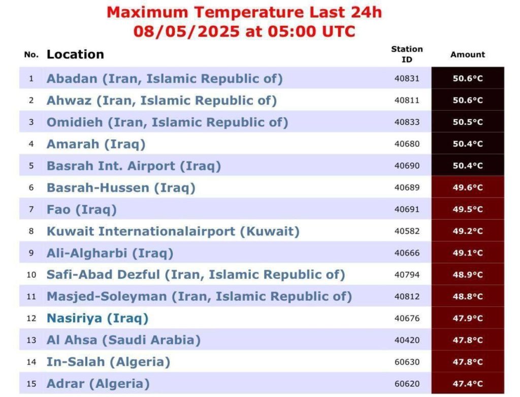 6 مدن عراقية بين الأعلى حرارة في العالم خلال 24 ساعة