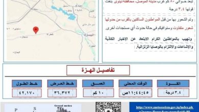 ضرب زلزال بلغت قوته 5 درجات على مقياس ريختر محافظة سمنان الإيرانية، بعمق 9 كيلومترات. وشعر به سكان عدد من…